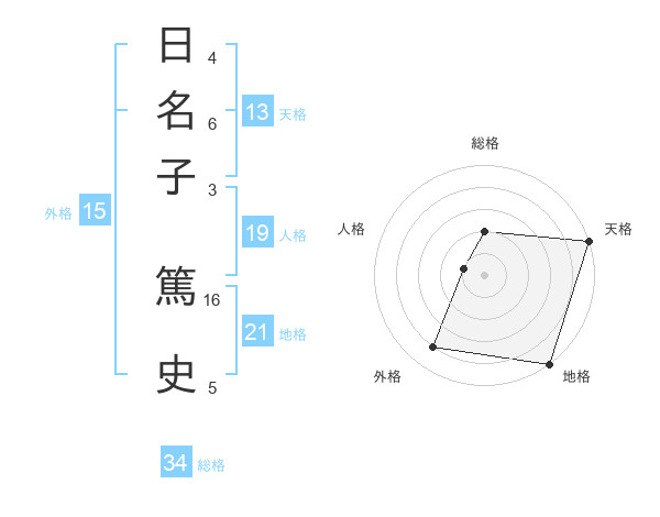 日名子 篤史さんの天格は13画の5点!