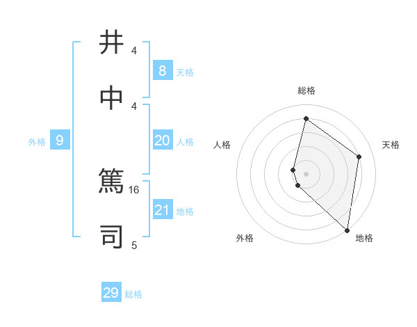 井中 篤司さんの総格は29画の4点!