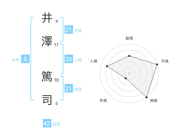 井澤 篤司さんを姓名の画数から五運を鑑定