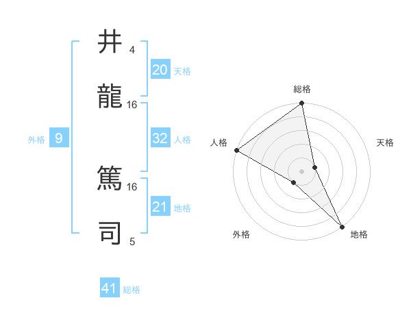 井龍 篤司さんの総格は41画の5点!