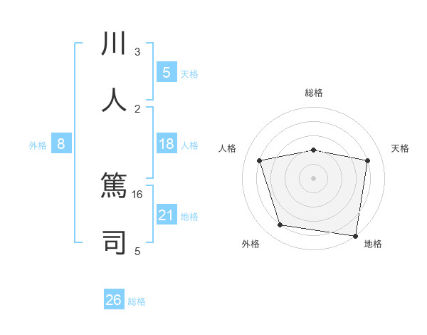 川人 篤司さんの天格は5画の4点!