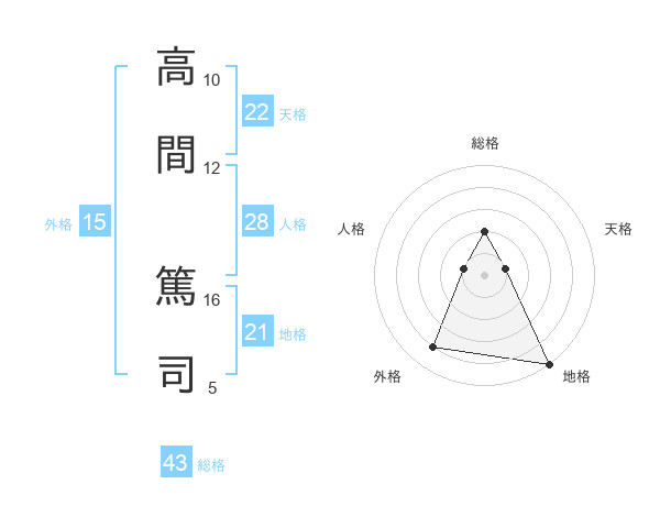 高間 篤司さんの天格は22画の1点!