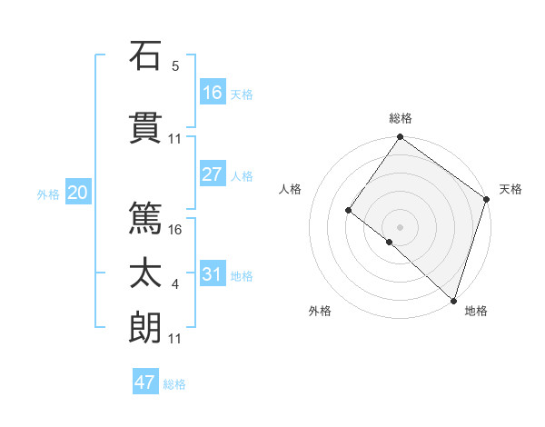 石貫 篤太朗さんの総格は47画の5点!