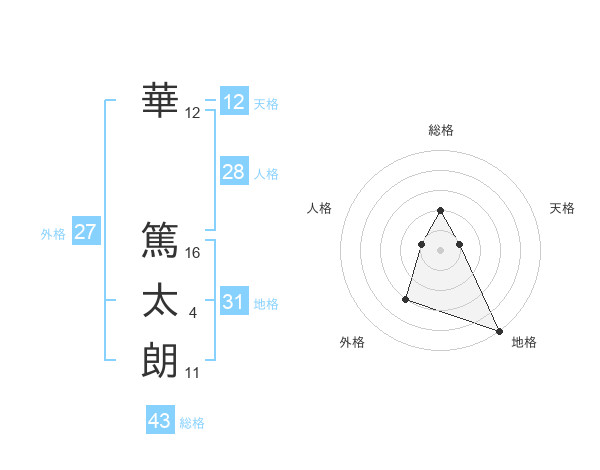 華 篤太朗さんの総格は43画の2点!
