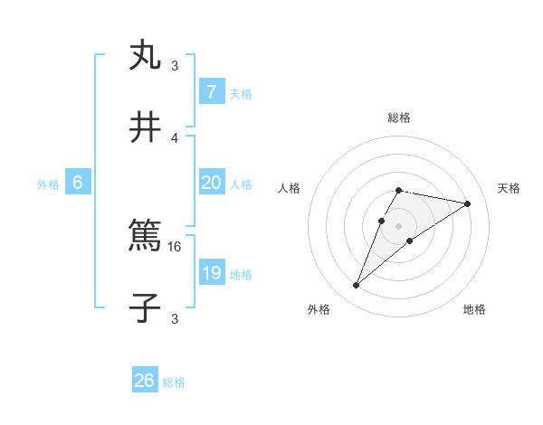 丸井 篤子さんを姓名の画数から五運を鑑定