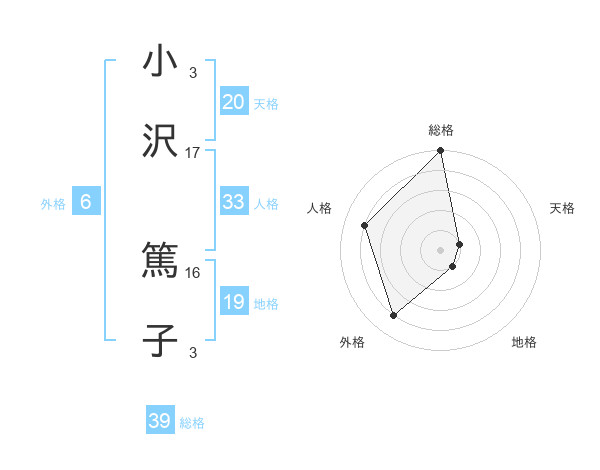 小沢 篤子さんの総格は39画の5点!