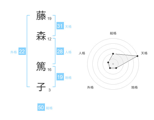 藤森 篤子さんを姓名の画数から五運を鑑定