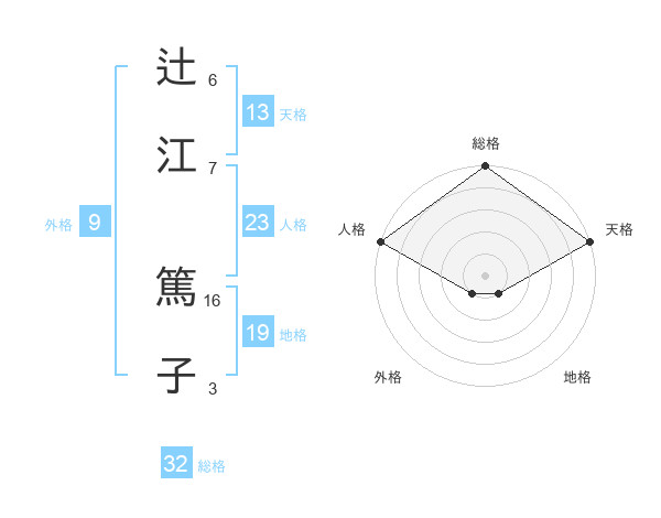 辻江 篤子さんを姓名の画数から五運を鑑定