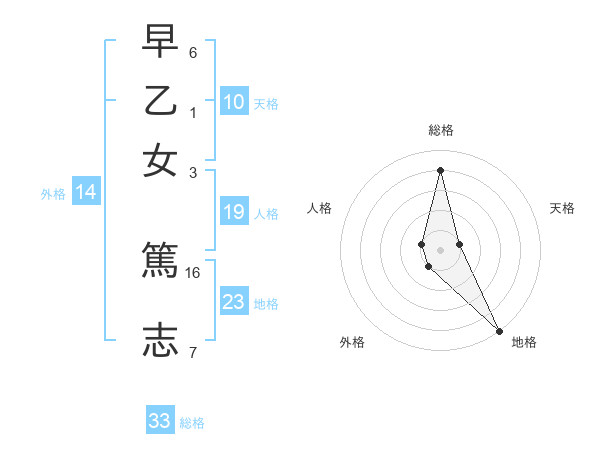早乙女 篤志さんを姓名の画数から五運を鑑定