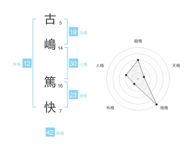 古嶋 篤快さんを姓名の画数から五運を鑑定
