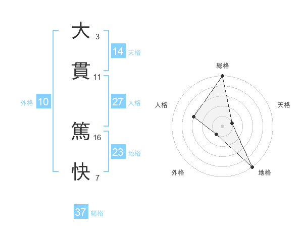 大貫 篤快さんの総格は37画の5点!