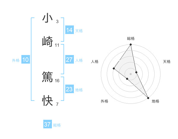 小崎 篤快さんの総格は37画の5点!