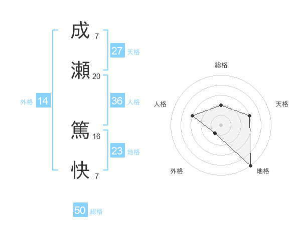 成瀬 篤快さんを姓名の画数から五運を鑑定