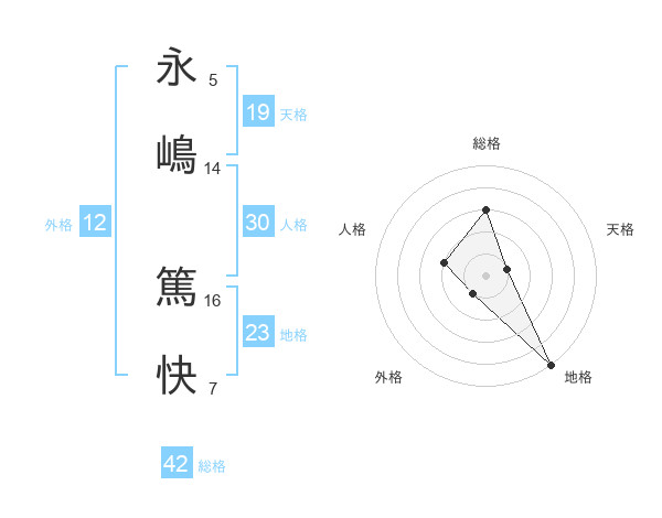 永嶋 篤快さんを姓名の画数から五運を鑑定