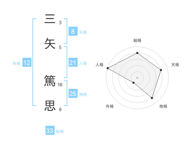 三矢 篤思さんの総格は33画の4点!