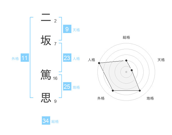 二坂 篤思さんの総格は34画の2点!