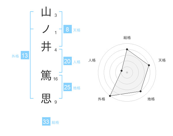 山ノ井 篤思さんを姓名の画数から五運を鑑定