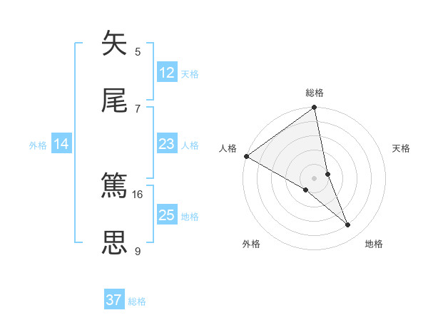 矢尾 篤思さんの総格は37画の5点!