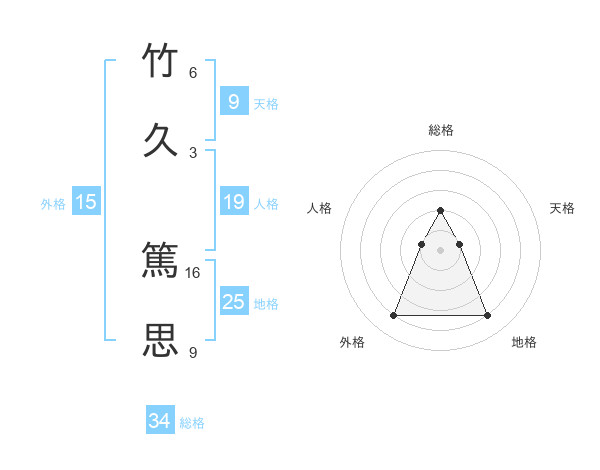 竹久 篤思さんを姓名の画数から五運を鑑定