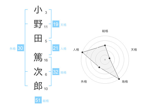 小野田 篤次郎さんの総格は51画の3点!