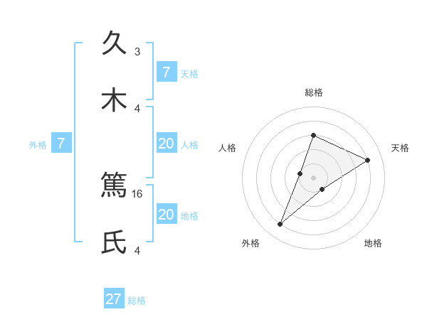 久木 篤氏さんの総格は27画の3点!
