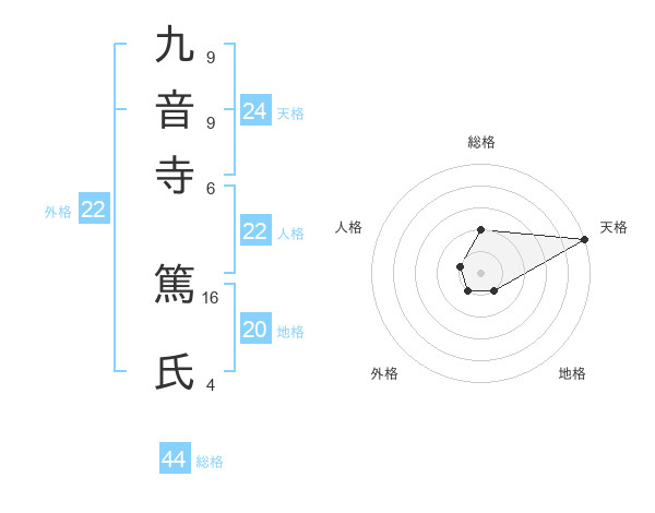 九音寺 篤氏さんの総格は44画の2点!