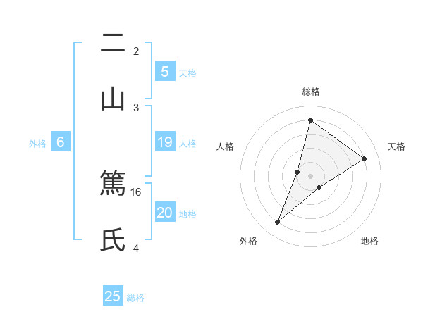 二山 篤氏さんの総格は25画の4点!