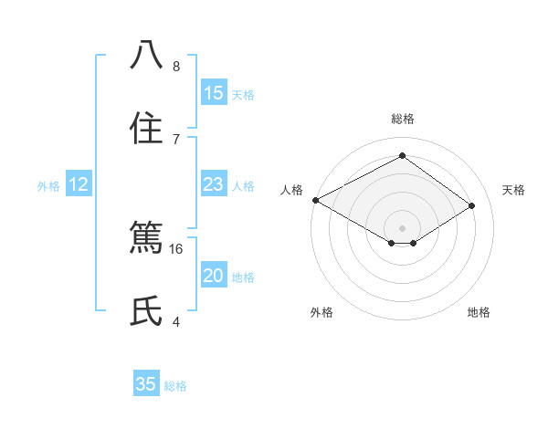 八住 篤氏さんの総格は35画の4点!