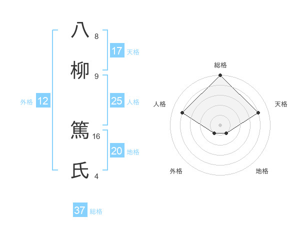 八柳 篤氏さんの総格は37画の5点!