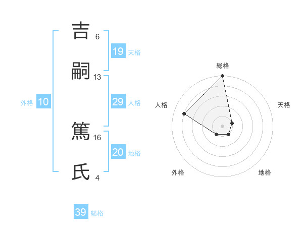 吉嗣 篤氏さんの総格は39画の5点!