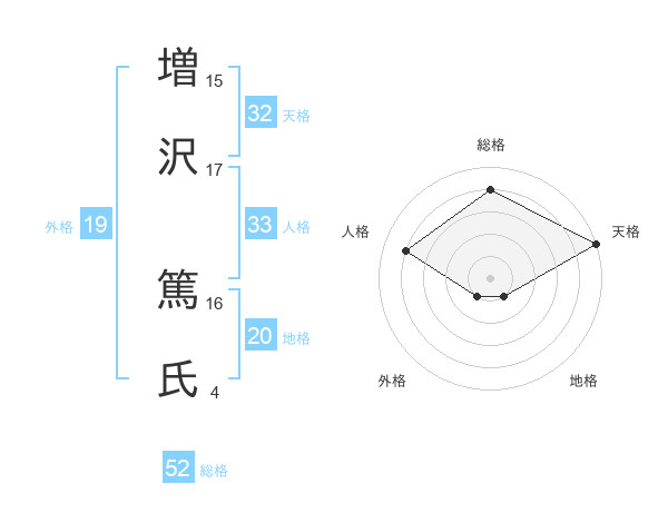 増沢 篤氏さんの総格は52画の4点!