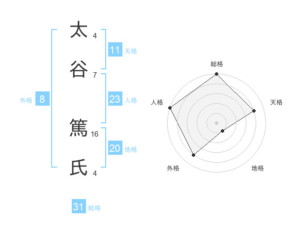 太谷 篤氏さんを姓名の画数から五運を鑑定