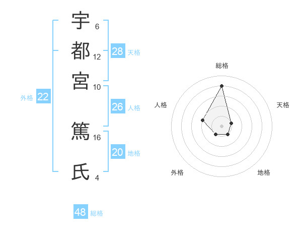 宇都宮 篤氏さんを姓名の画数から五運を鑑定