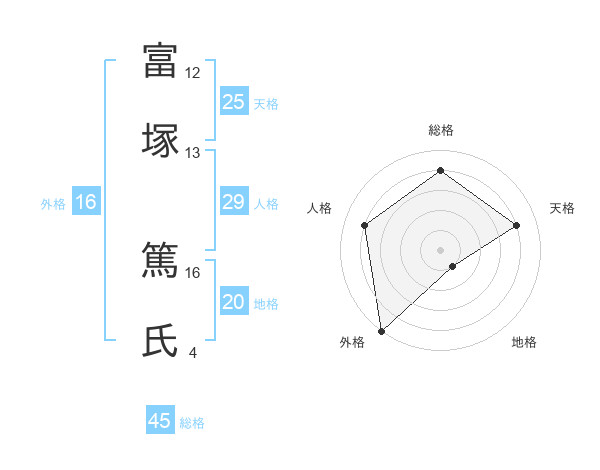 富塚 篤氏さんの総格は45画の4点!