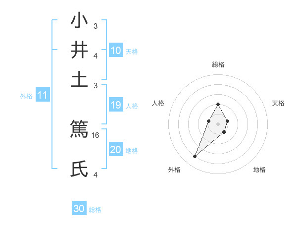 小井土 篤氏さんの総格は30画の2点!
