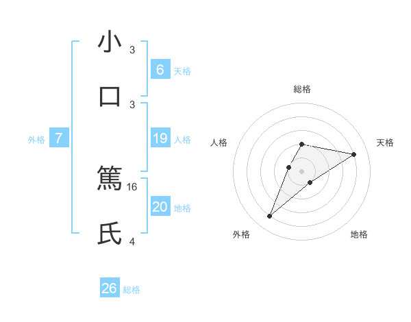 小口 篤氏さんの総格は26画の2点!