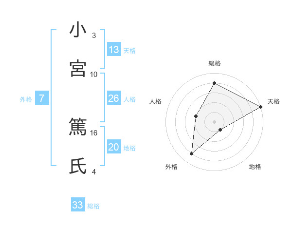 小宮 篤氏さんの総格は33画の4点!