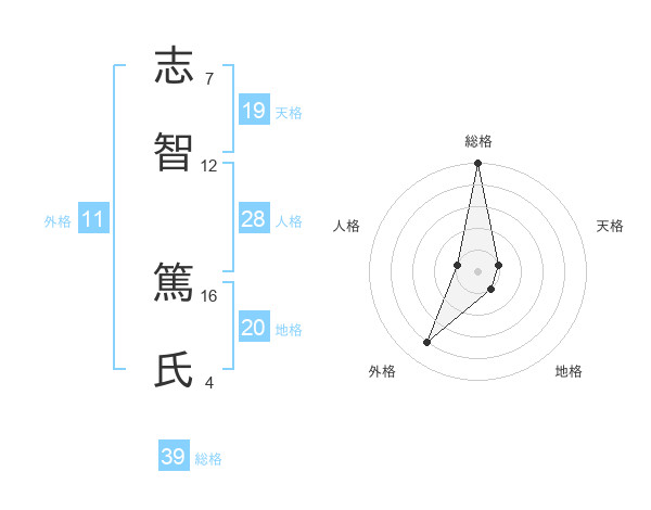 志智 篤氏さんの総格は39画の5点!