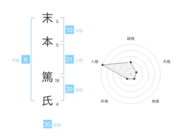 末本 篤氏さんの総格は30画の2点!