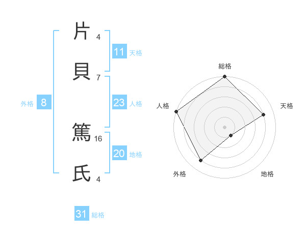 片貝 篤氏さんの総格は31画の5点!