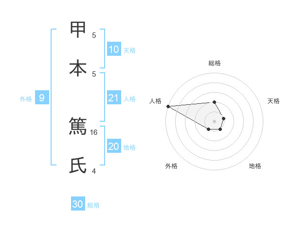甲本 篤氏さんの人格は21画の5点!