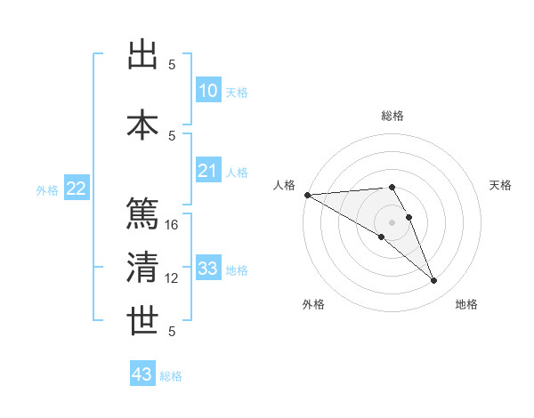 出本 篤清世さんを姓名の画数から五運を鑑定