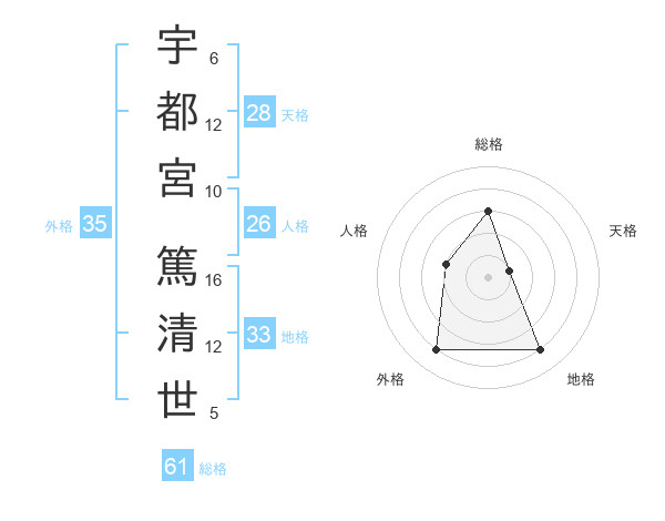 宇都宮 篤清世さんを姓名の画数から五運を鑑定