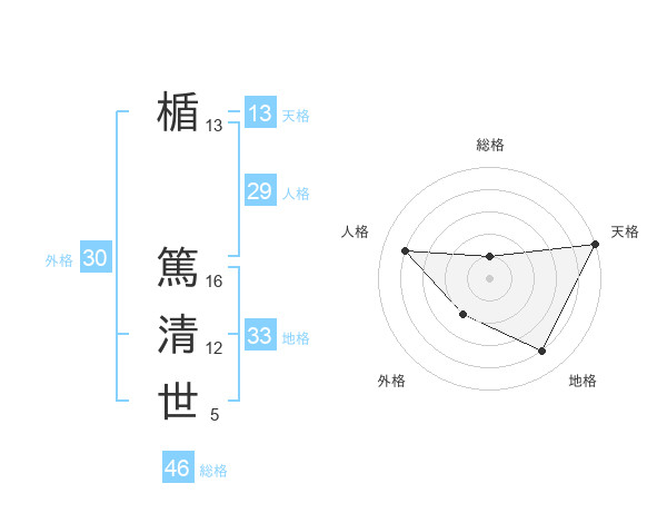 楯 篤清世さんの天格は13画の5点!