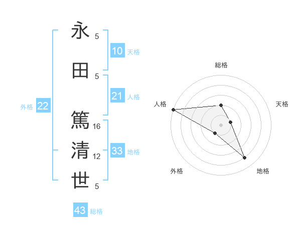 永田 篤清世さんを姓名の画数から五運を鑑定
