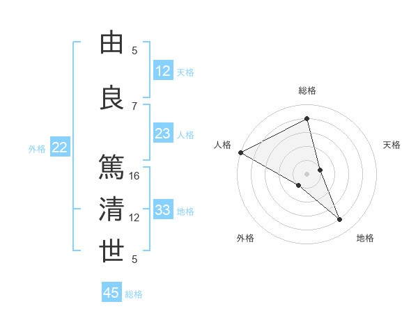 由良 篤清世さんを姓名の画数から五運を鑑定
