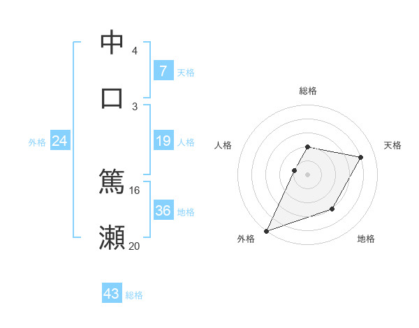 中口 篤瀬さんの総格は43画の2点!