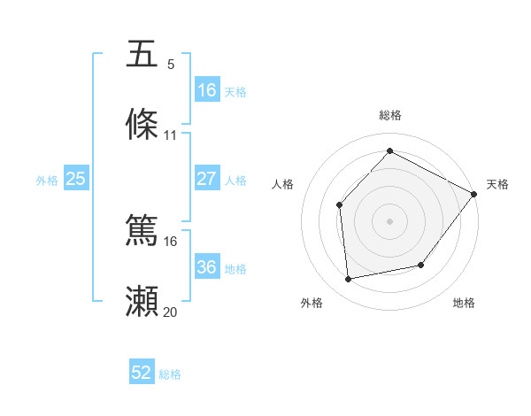 五條 篤瀬さんの総格は52画の4点!