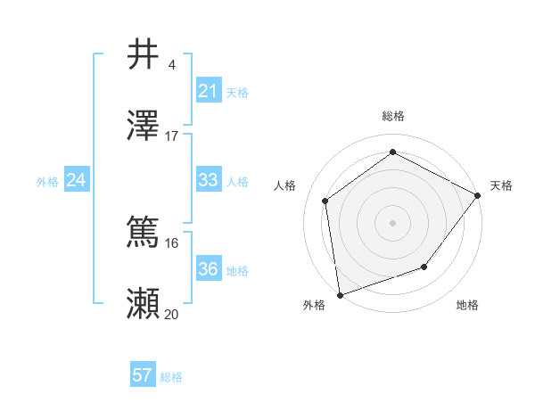 井澤 篤瀬さんの総格は57画の4点!