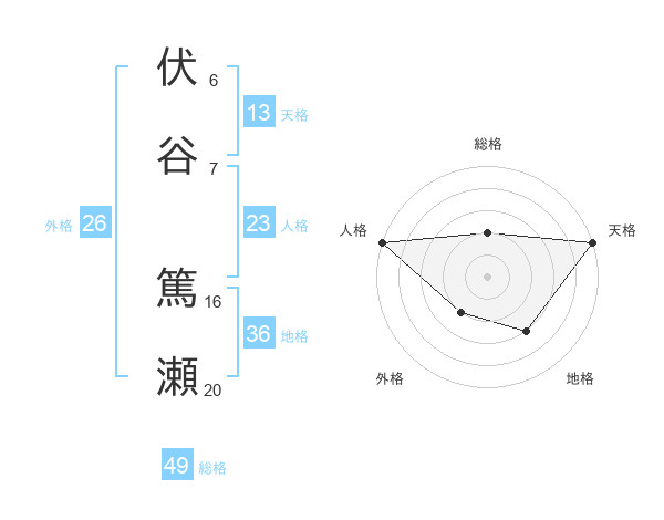 伏谷 篤瀬さんの総格は49画の2点!